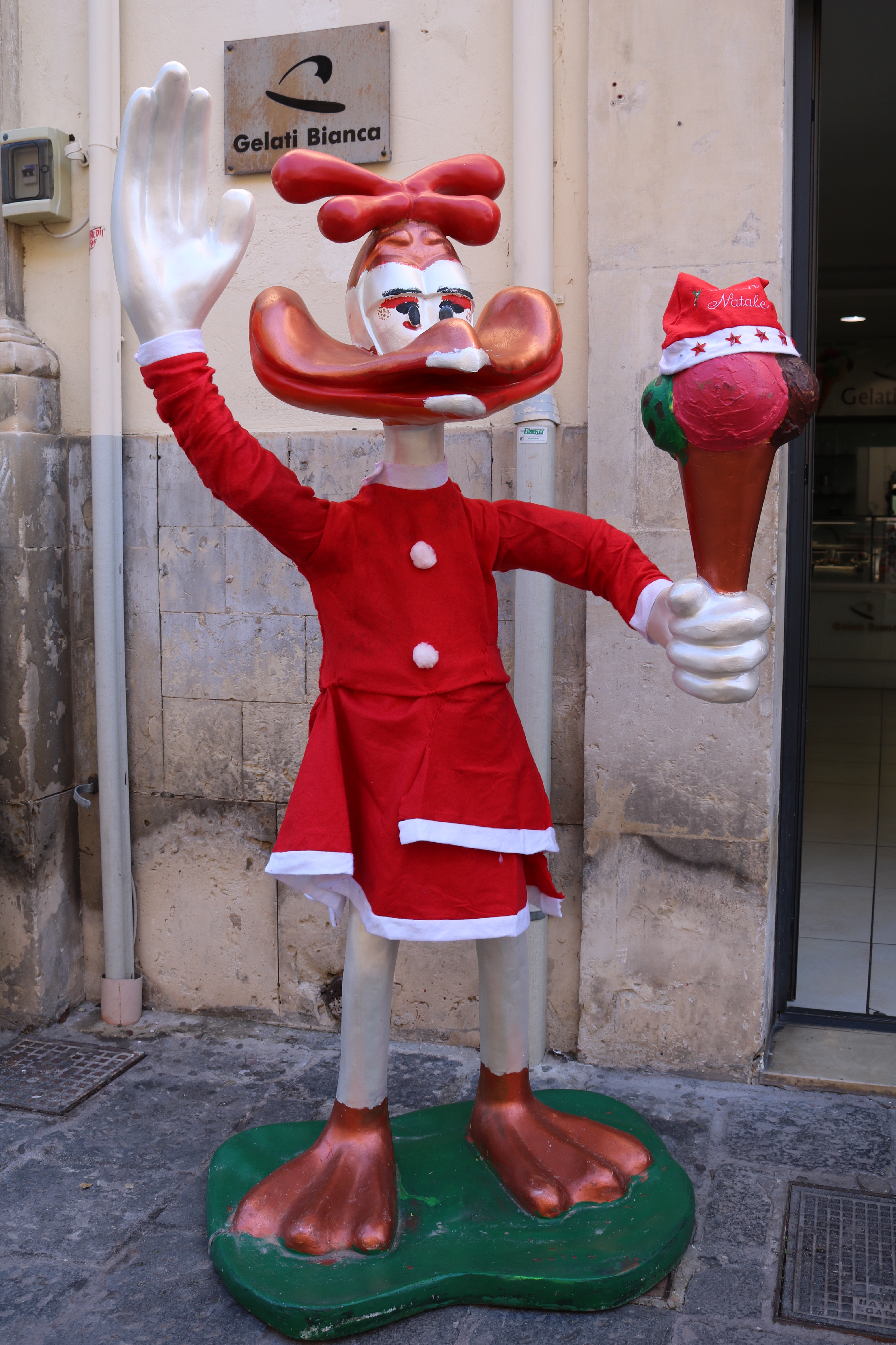 If you are a fan of the tv series Inspector Montebaldo, then Ragusa and the surrounding countryside should trigger memories of scenes from it. Filled with baroque churches, it is another pleasant place to stroll through, find a cafe in the sun and people watch, amazed that you are sitting outside in December and warm. occasionally there are reminders that it is December – Santa costumes on ice cream holding cartoon characters!