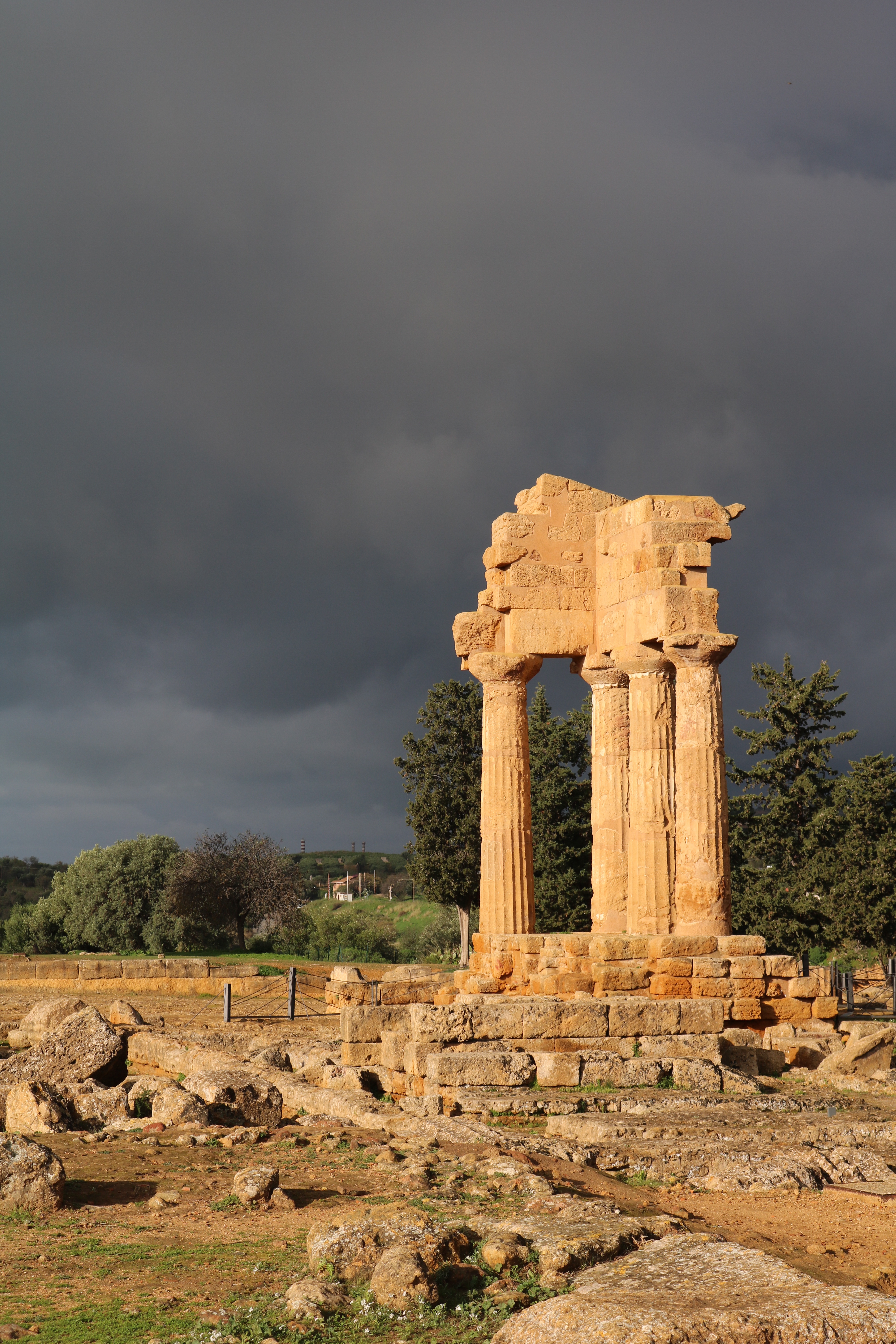 The next highlight was the Valley of the Temples. Set on a hill, so Valley is a misnomer, with the town of Agrigento behind it are the well preserved remains of seven Greek temples. Another Unesco world heritage site, this one helped by an Englishman, sir Alexander Hardcastle who funded many of the excavations. The weather was very atmospheric when we arrived.