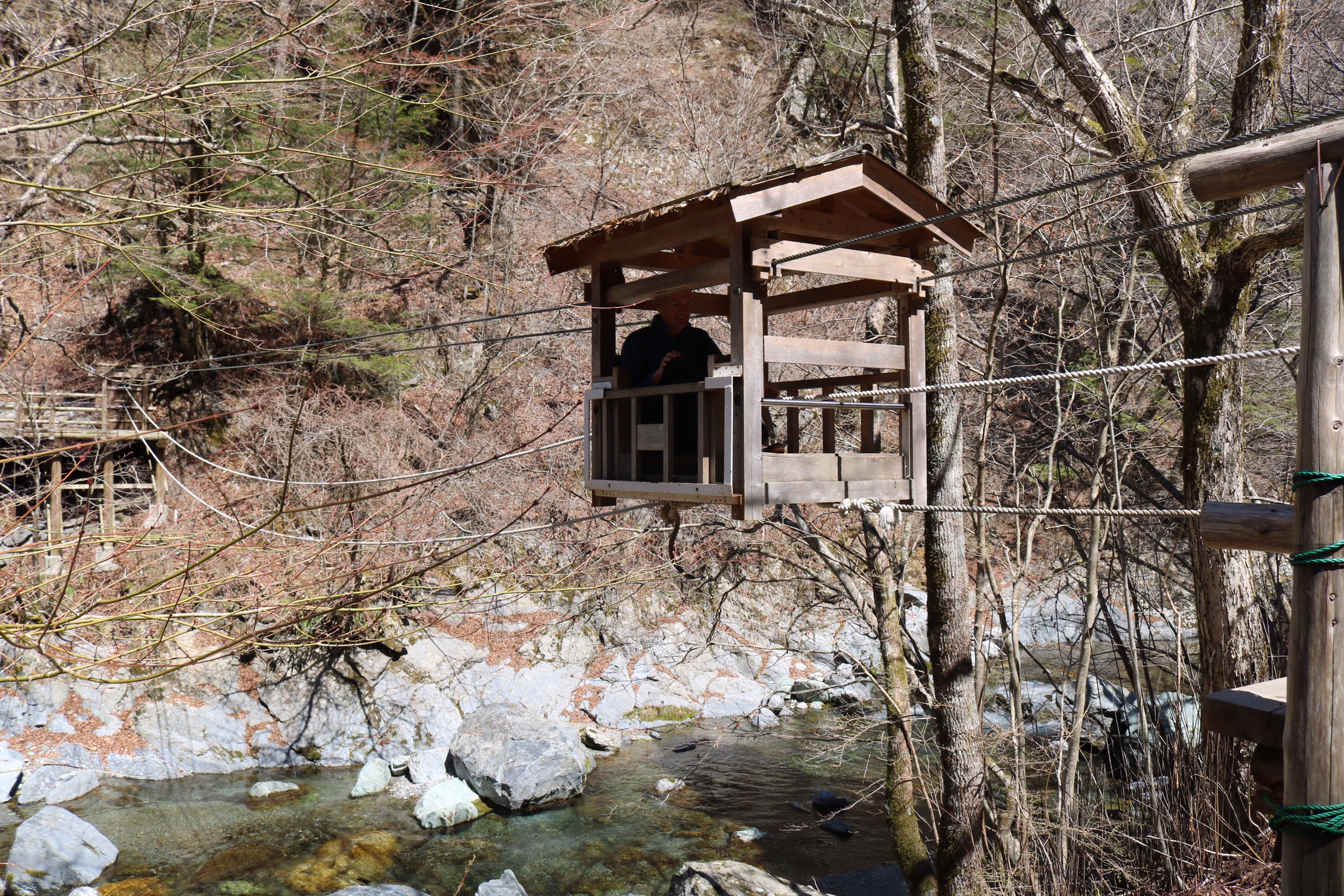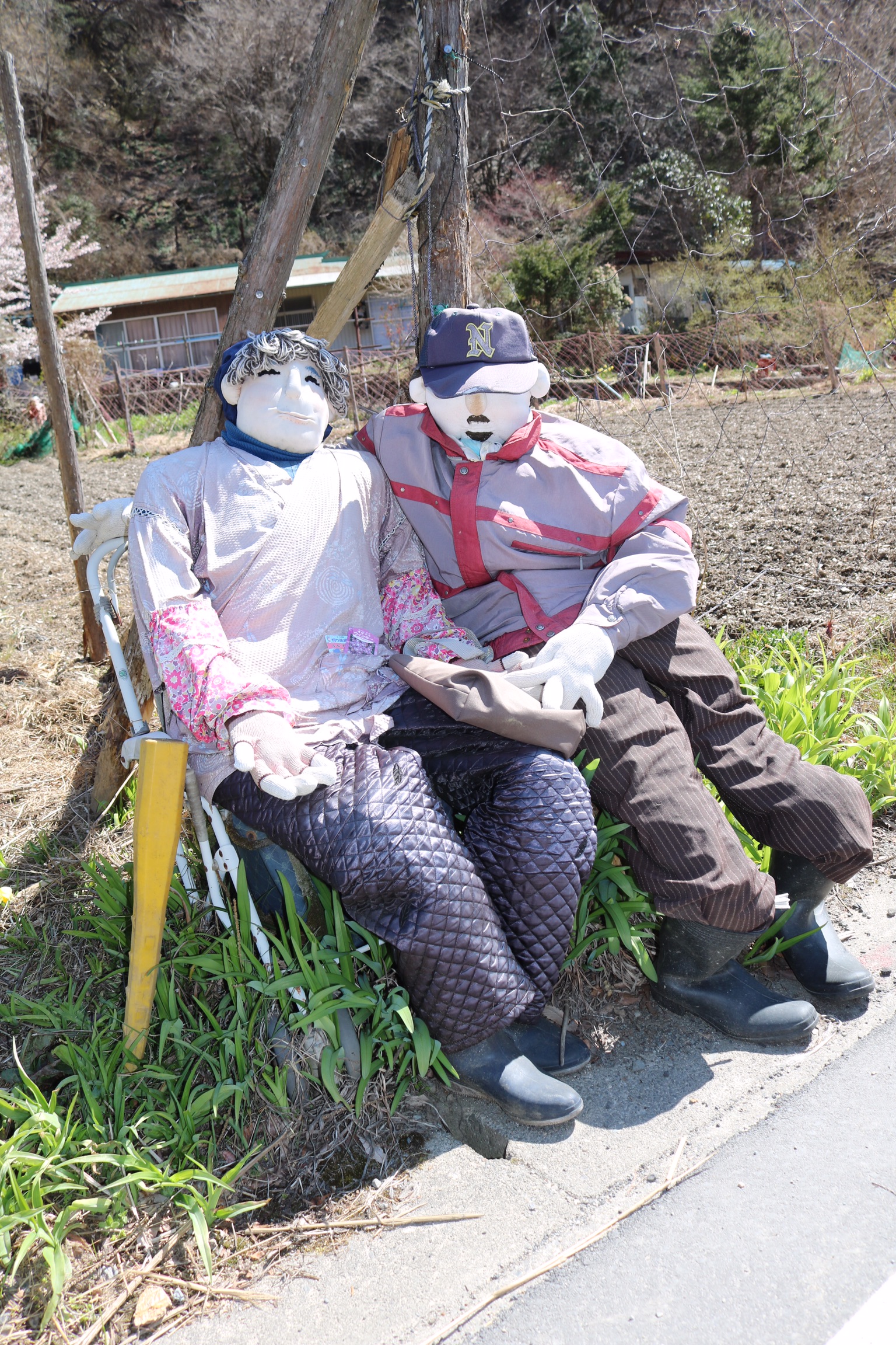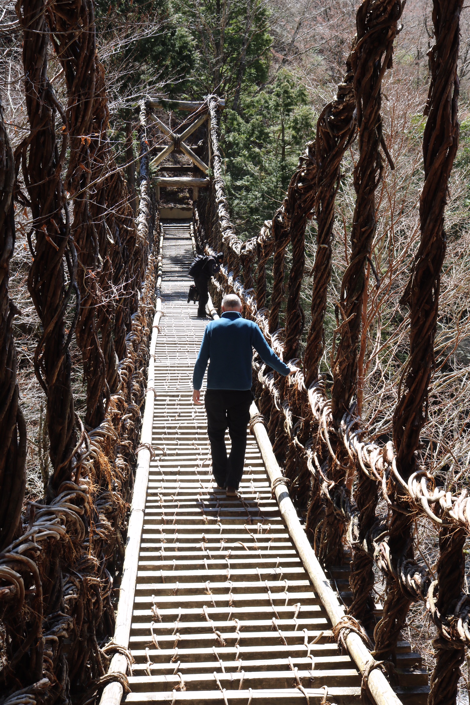 We headed off in the morning to view the Oboke gorge in the Aida valley and then up a very winding road towards Mount Tsurugi, looking forward to a cable car ride. But first we had fun exploring the Oku Iya Niju-Kazurabashi Bridges, a set of two suspension bridges often referred to as the “husband-and-wife bridges.” and pulling ourselves across the river in little carts, the way they used to transport goods across. Next we drove through, the village of scarecrows. Not a human to be seen, so it has an eerie abandoned feeling. The scarecrows are posed very realistically and it makes a silent statement about deserted rural villages.