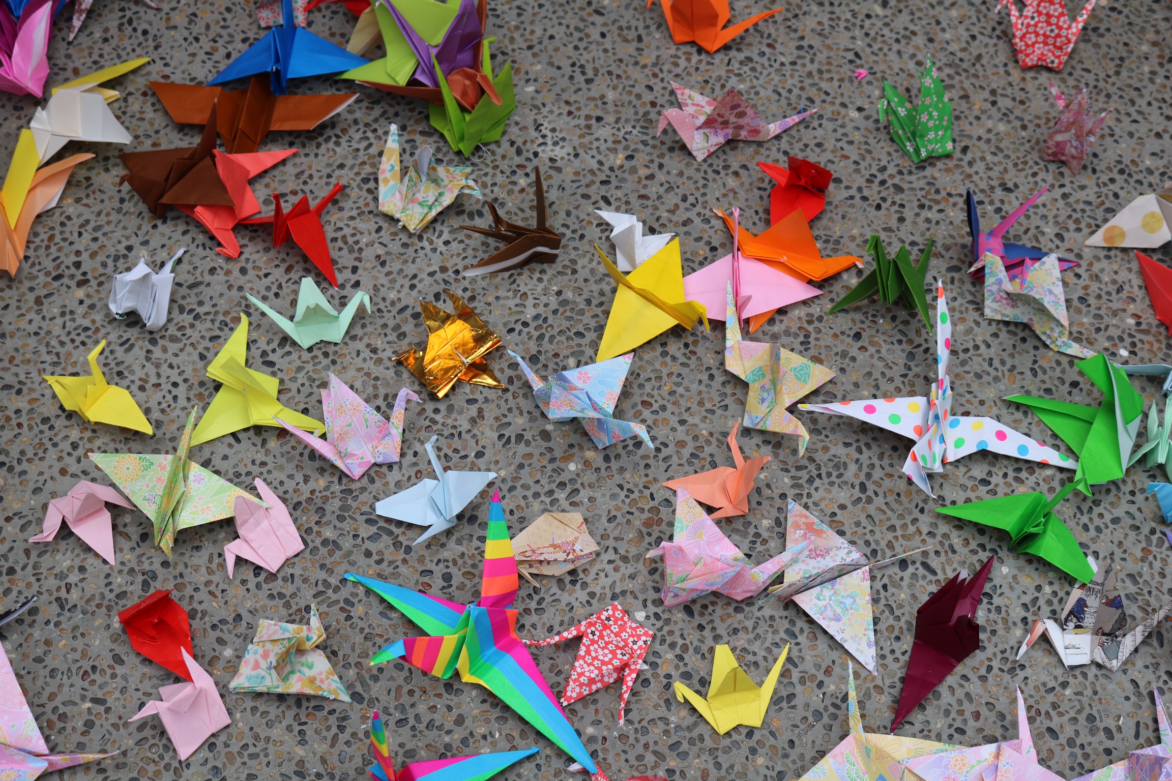 The paper cranes at the Chidren’s memorial come originally from the ancient Japanese tradition of origami or paper folding, but today they are known as a symbol of peace. They are folded as a wish for peace in many countries around the world. This connection between paper cranes and peace can be traced back to a young girl named Sadako Sasaki, who died of leukemia ten years after the atomic bombing.