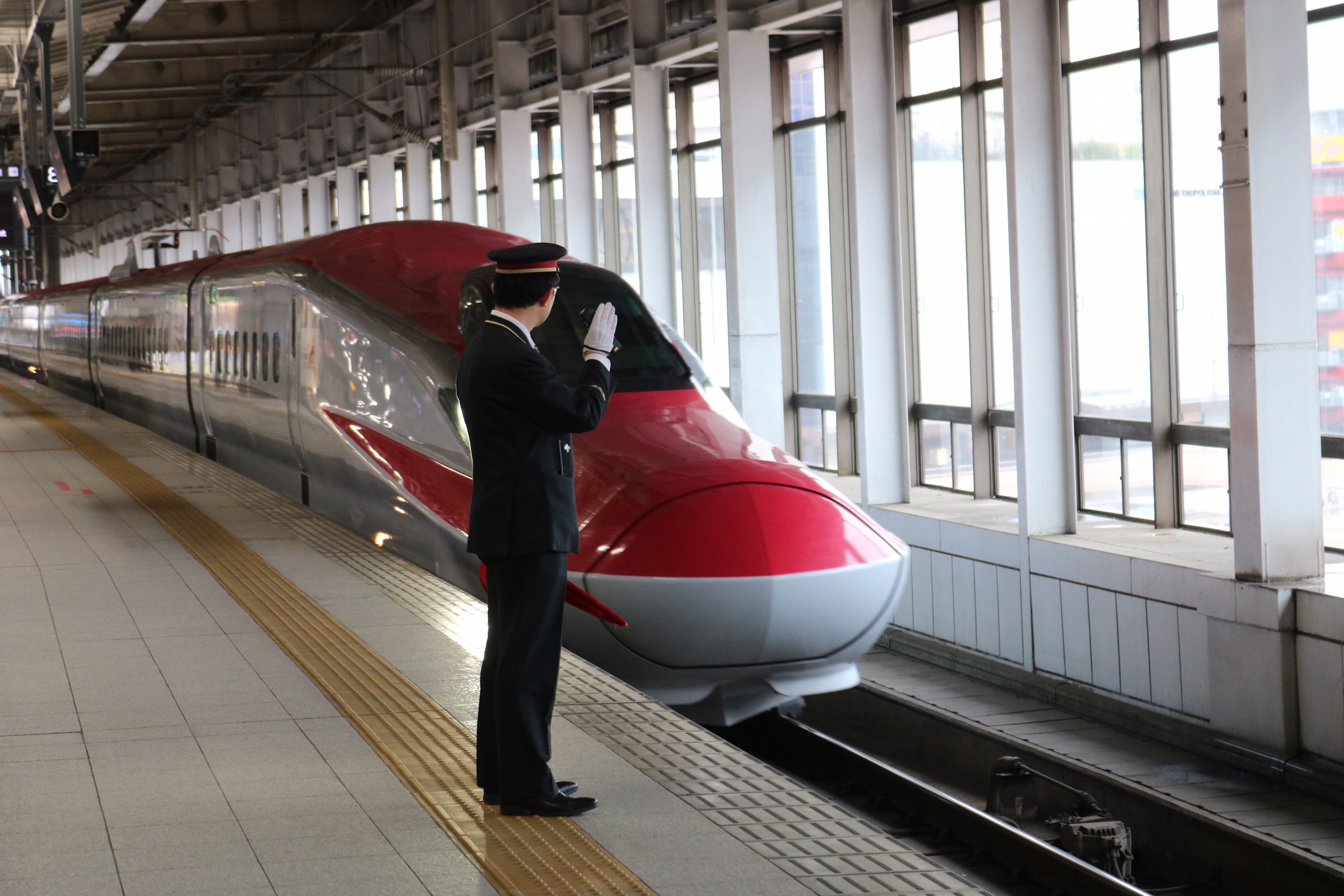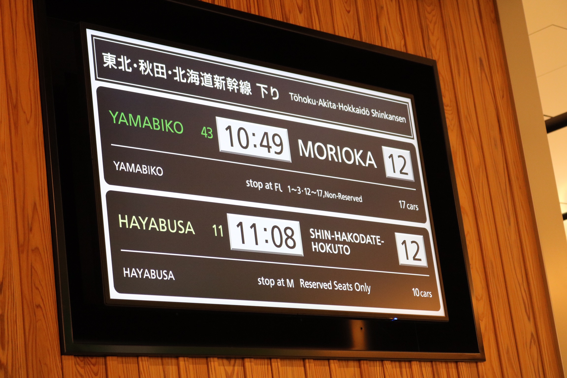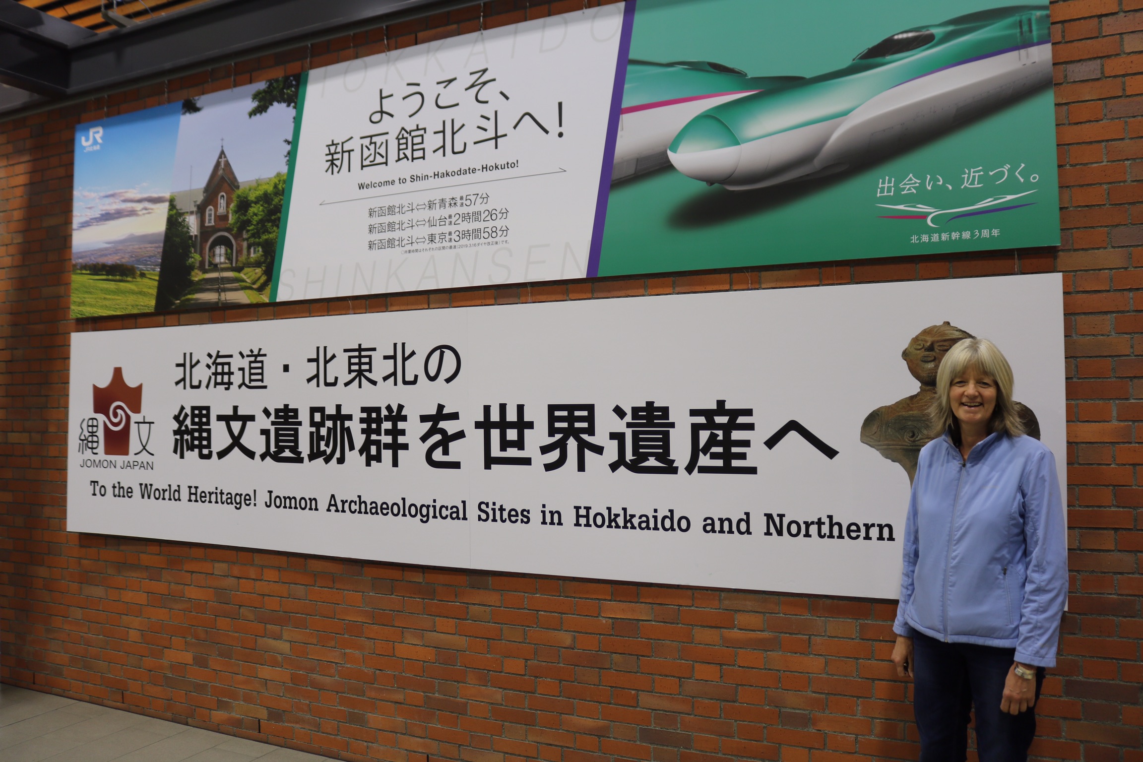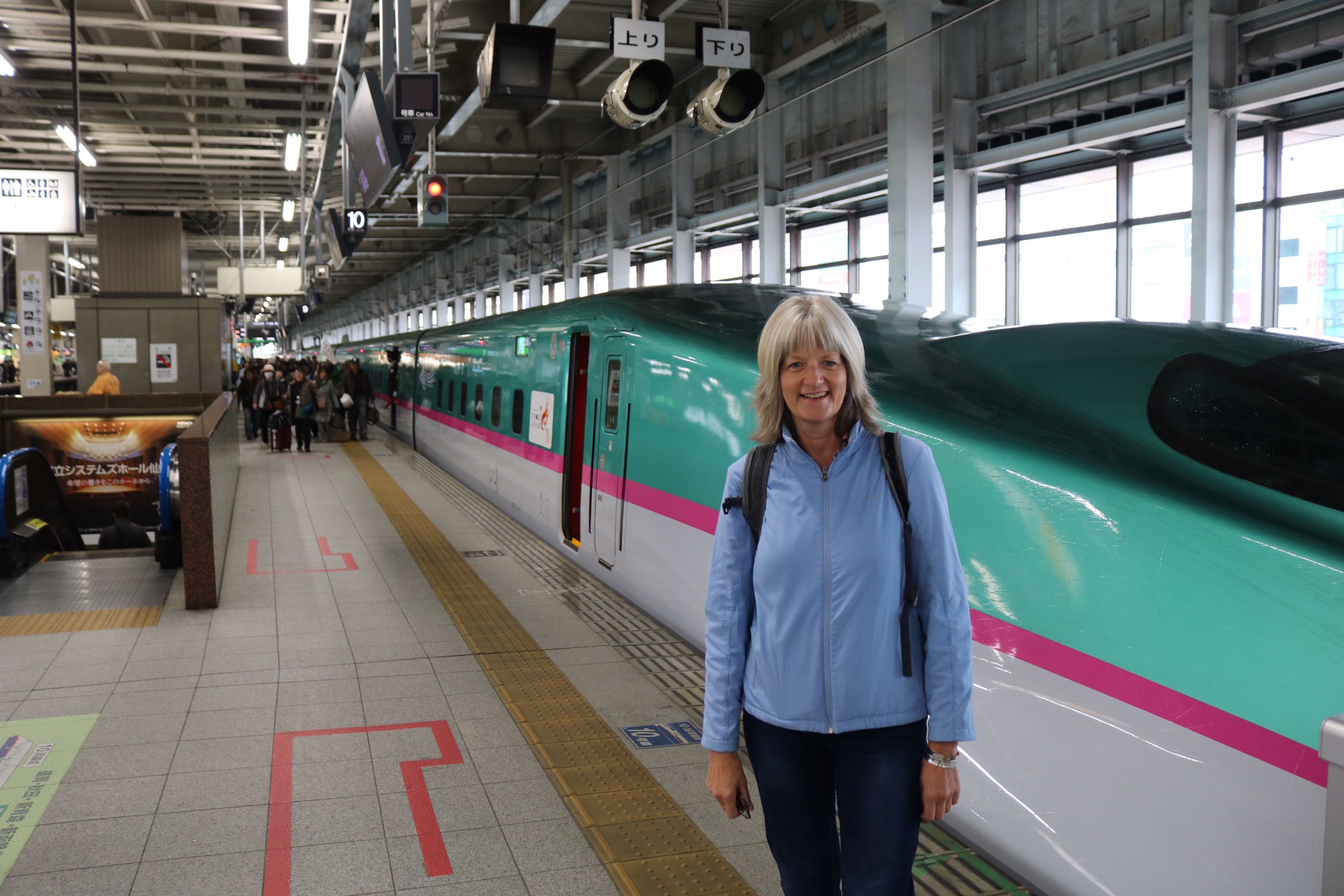 We were up early partly to have plenty of time to return the rental car and partly because I was excited about our trip on one of the famous Shinkansen trains from Sendai to Hakodate on the northernmost island of Hokkaido. Sendai station was full of new shops and restaurants so we had pancakes and then went up to see the trains departing before ours. No wonder they are known as bullet trains – their elegant shape looks like the rounded end of a bullet. We were so early we had time to kill watching Japan’s equivalent of Mary Berry demonstrate how to prepare bamboo shoots on the large screens tv in the waiting area.