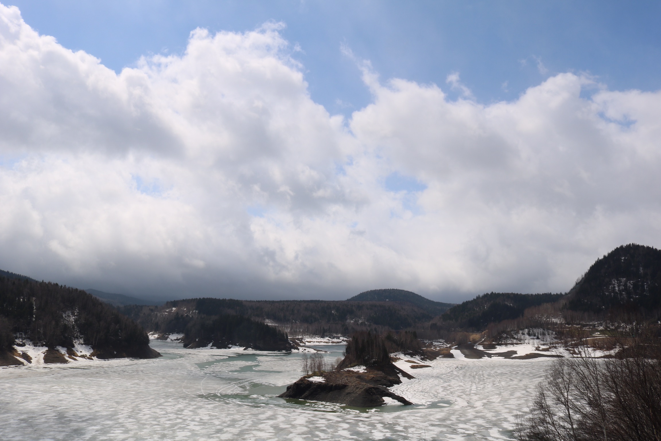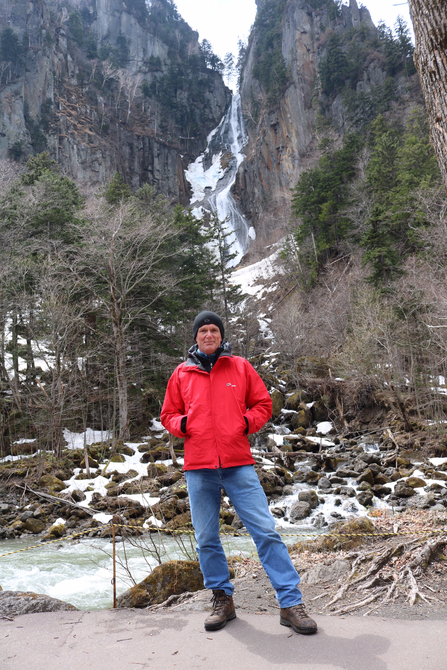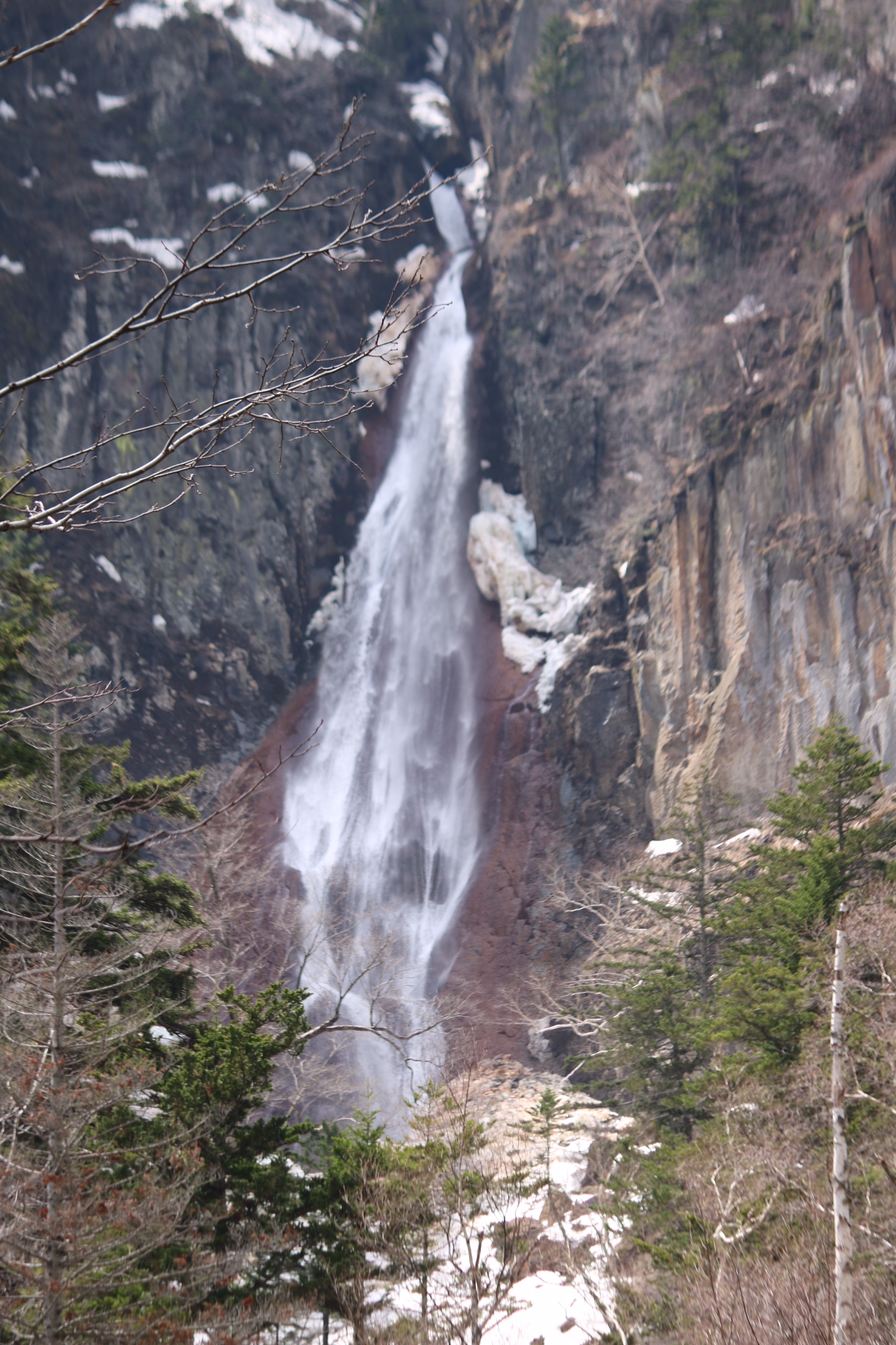 Our last long drive of the trip started with icy weather and we passed someone who had unfortunately managed to flip their car. Our route took us from Lake Kussharo through acres of flat farmland, spotting old grain storehouses, some which had been renovated and others starting to crumble. No cows in the fields, all still in barns. Hokkaido is famous for its dairy produce and products full of butter and cheese are in the shops. The cheese is very mild. Ice cream is very popular here too. We were headed for the Daisetsuzan National Park, Japan’s largest mountain park and Hokkaido’s tallest mountain Mount Asahidake, 2291m. En route we stopped at Lake Daisetsu, formed by the Daisetsu dam, still covered with ice that was breaking up and again at the Ginza and Ryusei waterfalls. They stand side by side pouring torrents out of cracks in the gorge. We had hoped to do a short walk to stretch our legs, but there is no path near the falls, so it was a quick photocalll and back on the road.