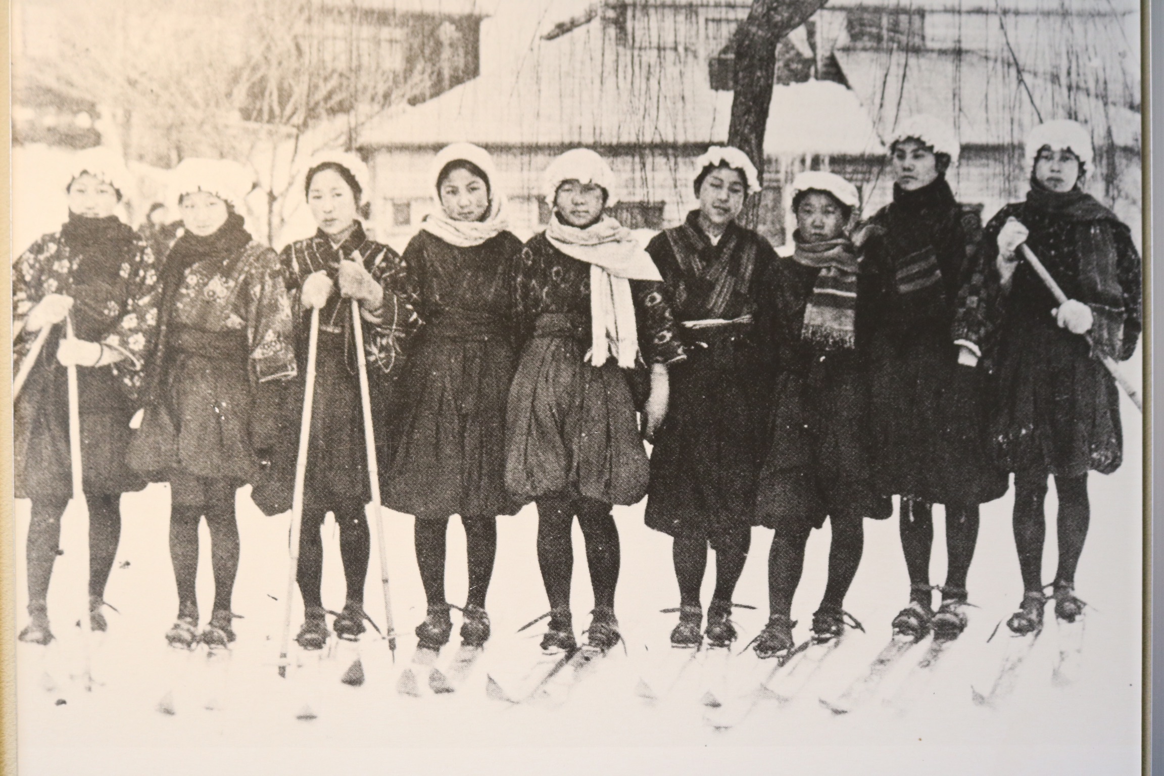 The village has farms, fishermen’s homes, shops, schools and some government buildings. The agricultural college established in 1876 was important to the farming community and to the overall development of Hokkaido. Dr William Clark, the President of Massachusetts Agricultural College was invited to Sapporo and became the first president of the college. Though he only stayed a year, he is quoted in many places for his maxim “Boys be ambitious”. No girls were admitted to the college, but I did find a great picture of a group of them in skiing bloomers in another school building. The famous clock tower in the centre of Sapporo is also from the college. The village contains examples of old farm machinery, all geared to rice production. The fishing family’s home showed how wealthy fishing communities were and how close knit. Several families lived in the one home. Their storehouses certainly has plenty of sake and rice in them.