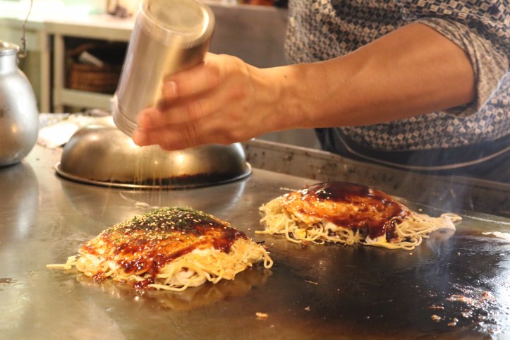 Our hotel was in the Susukino district which has over 3500 restaurants to choose from! We were there two nights and had two very different meals – one in an old storehouse or kura where we cooked our own meat on a little bbq at our table. Lamb is very popular on Hokkaido and it was delicious. As was the beef which you wrapped in large lettuce leaves. The second night we had another okinymiayki – the noodle pancake with cabbage and egg, cooked on a hot griddle in front of you. One with shrimp and squid and one with pork and green onions. Not very healthy, when you see how much oil they put on the noodles, but very tasty and fun to watch and to eat, especially with sake. It is served in glasses that are filled to the brim so they overflow into boxes.